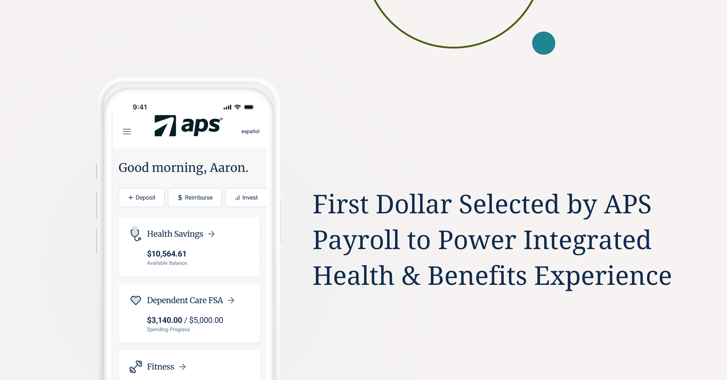 First Dollar announced today that it was selected by APS Payroll, a leading provider of human capital management solutions, to deliver an integrated, white-labeled benefits solution for APS clients.